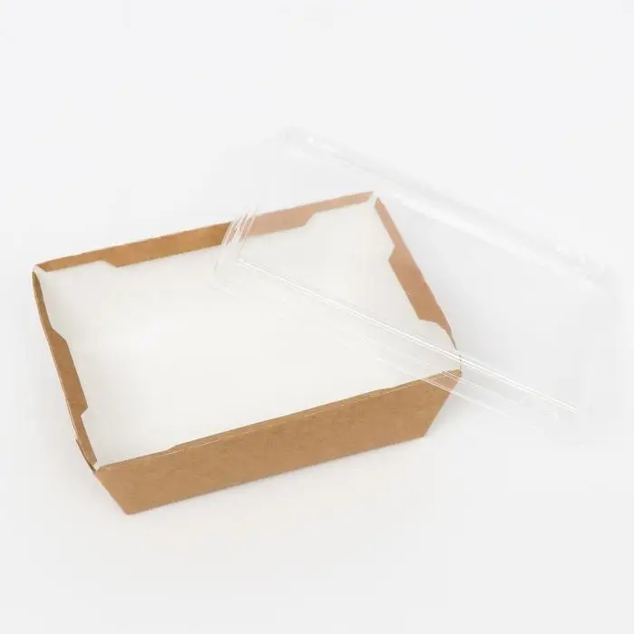 Контейнер с прозрачной крышкой, крафт, 0,4 л, 14,5 х 9,5 х 4, 5 см