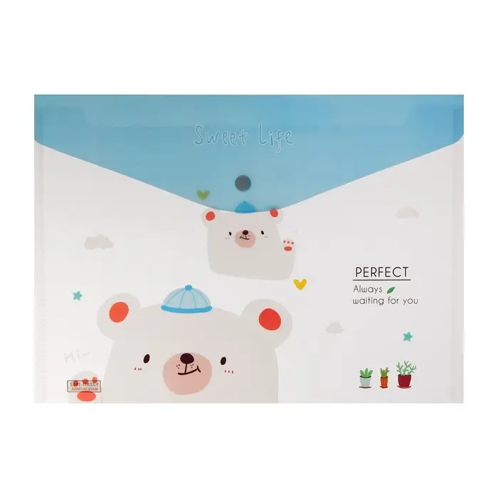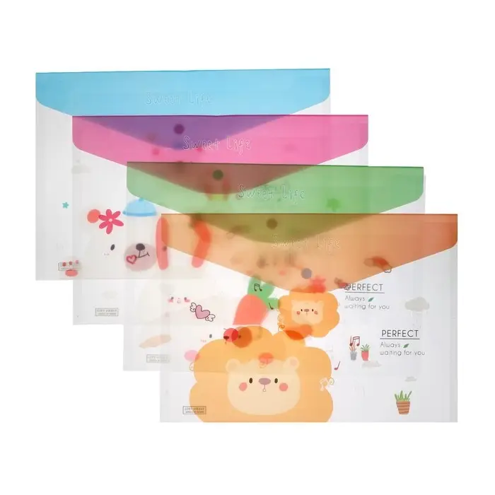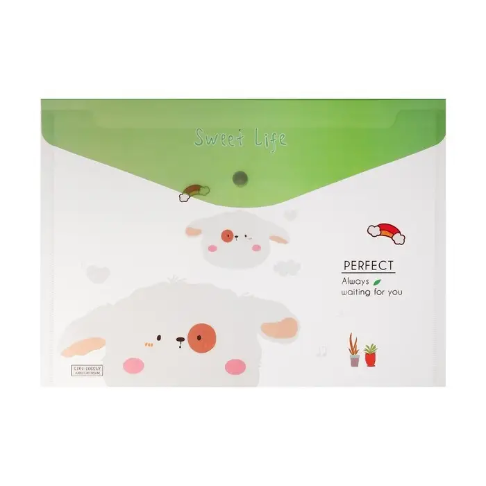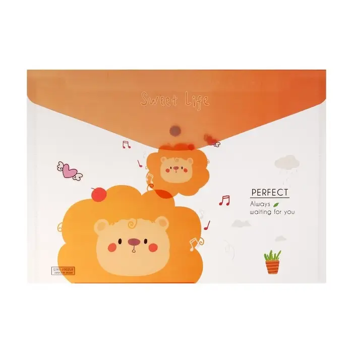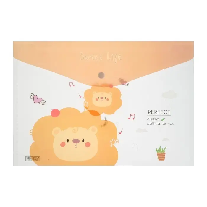 Папка-конверт на кнопке, А4, 180 мкм, "Зверьки", МИКС