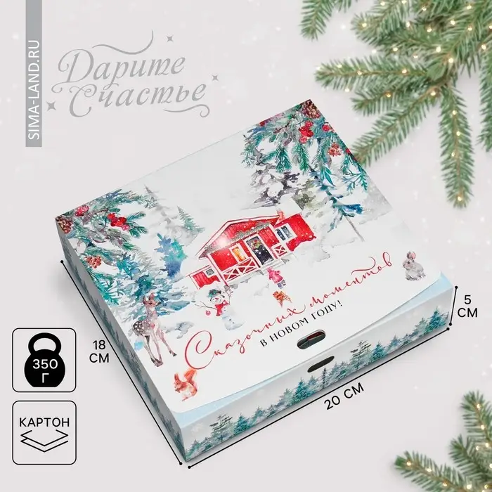 Коробка подарочная новогодняя складная «Сказочного Нового года», 20 х 18 х 5 см, БЕЗ ЛЕНТЫ