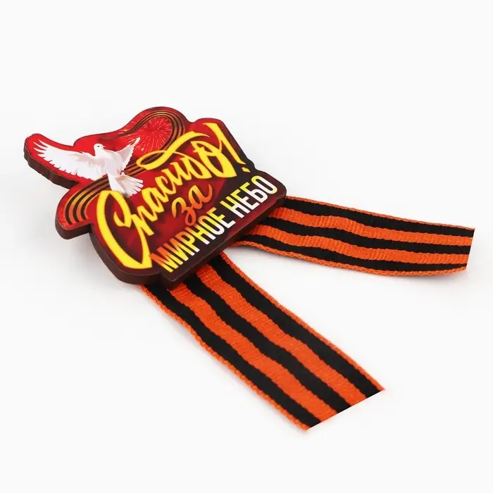 Значок деревянный с георгиевской лентой на 9 мая «Орден», 4.5×6.3 см