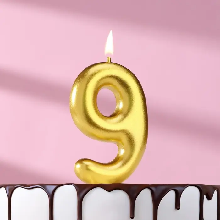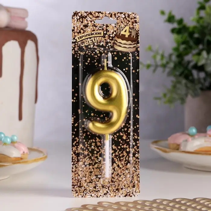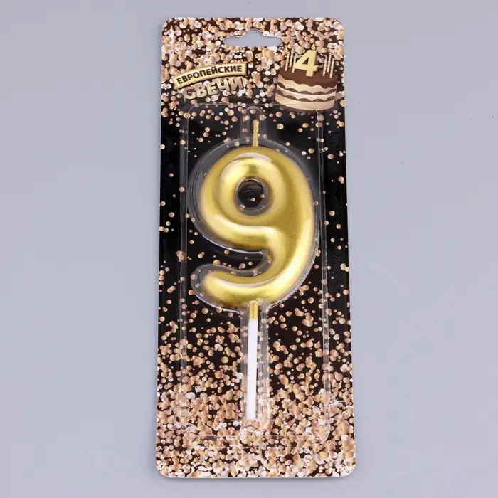 Свеча в торт «Европейская», цифра 9, 6 см, золото