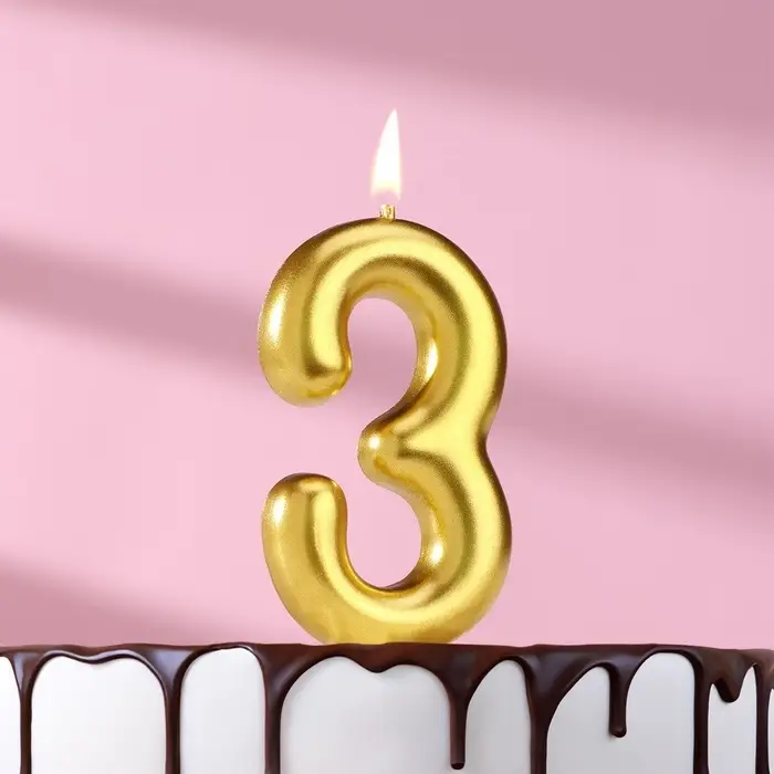 Свеча в торт «Европейская», цифра 3, 6 см, золото