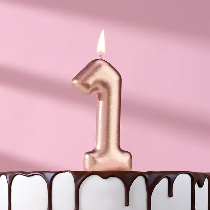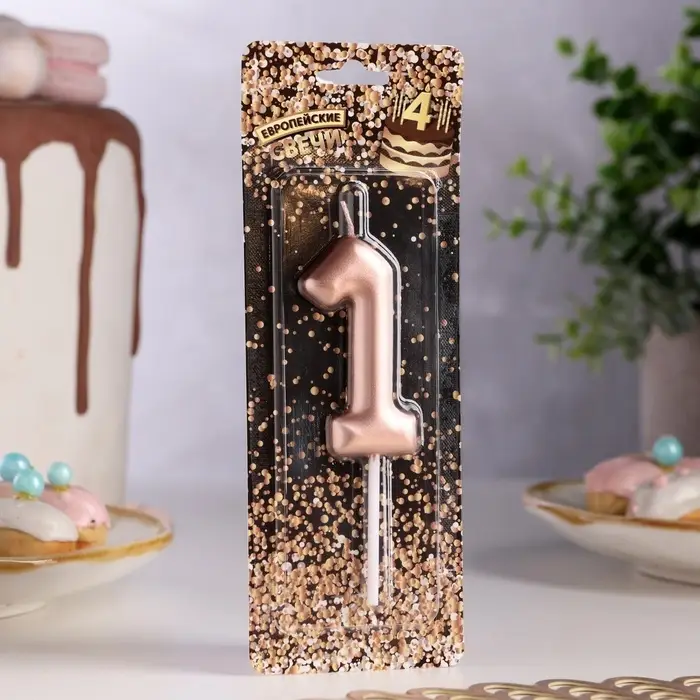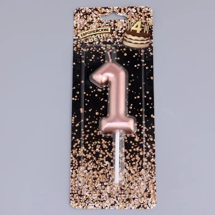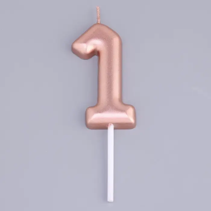 Свеча в торт «Европейская», цифра 1, 6 см, розовое золото