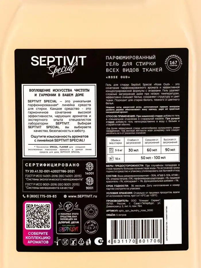 Гель для стирки Septivit Special "Rose Oud", 5л