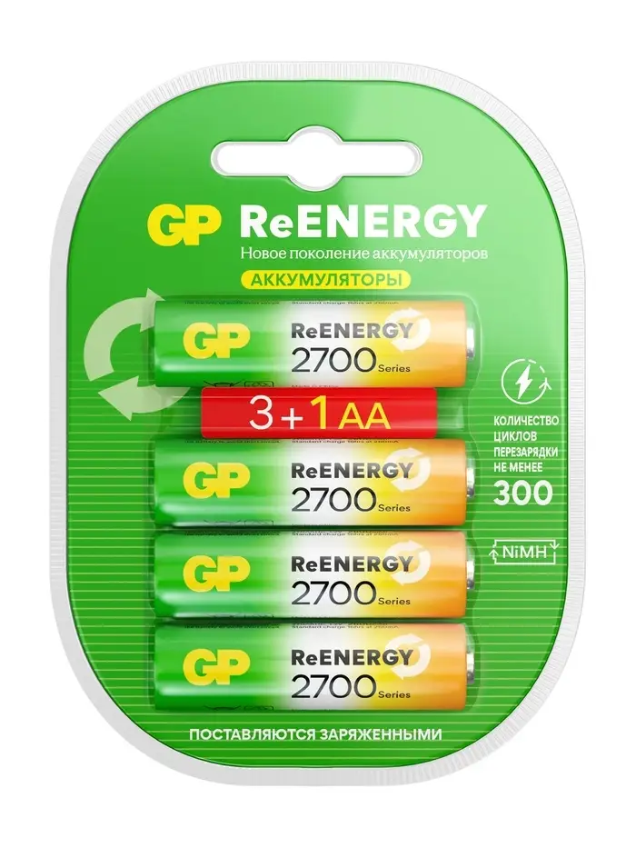 Аккумулятор GP, Ni-Mh, AA, HR6-4BL, 1.2В, 2700 мАч, блистер, 4 шт.