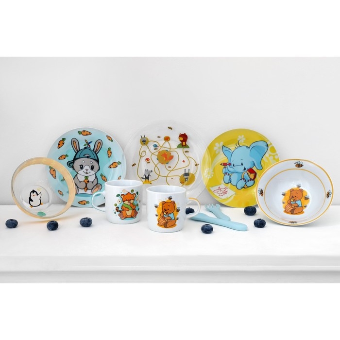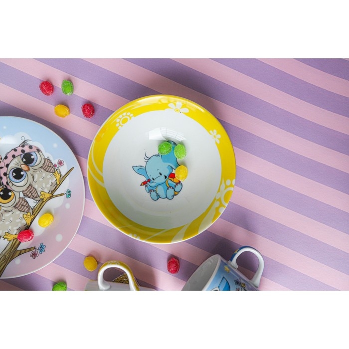 Набор посуды фарфоровой «Зоопарк», 3 предмета: тарелка d=20 см, салатник d=19,8 см, кружка 200 мл