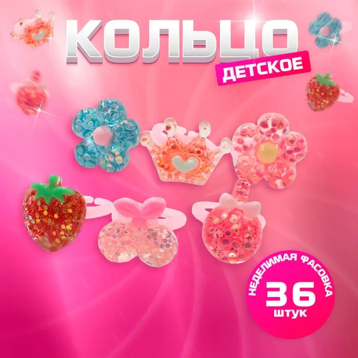 Кольцо детское «Выбражулька» ассорти для девочек, форма МИКС, цвет МИКС, безразмерное