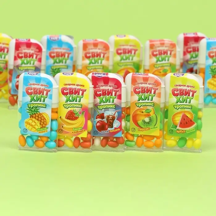 Оригинальный сладкий подарок для мальчиков и девочек! Сахарное драже "Свит хит" с насыщенным тропическим вкусом. Конфеты в индивидуальной упаковке с ярким дизайном, которую можно взять с собой на прогулку, в поездку, путешествие, в детский сад или школу. Такое угощение придется по вкусу любому сладкоежке! Прекрасный подарок детям на любой праздник.