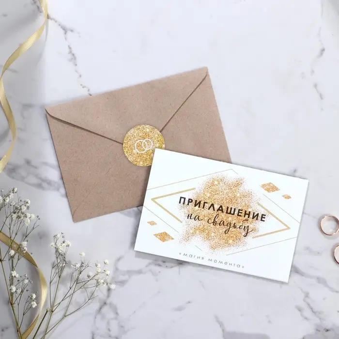 Приглашение в крафтовом конверте "Золотые блестки", 10 х 15 см