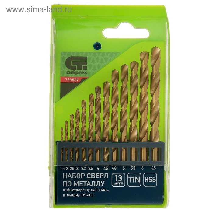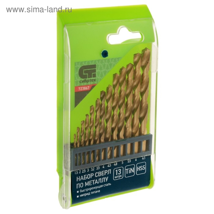 Набор сверл по металлу "СИБРТЕХ", нитридтитановые, 1.5 - 6.5 мм, HSS, 13 шт