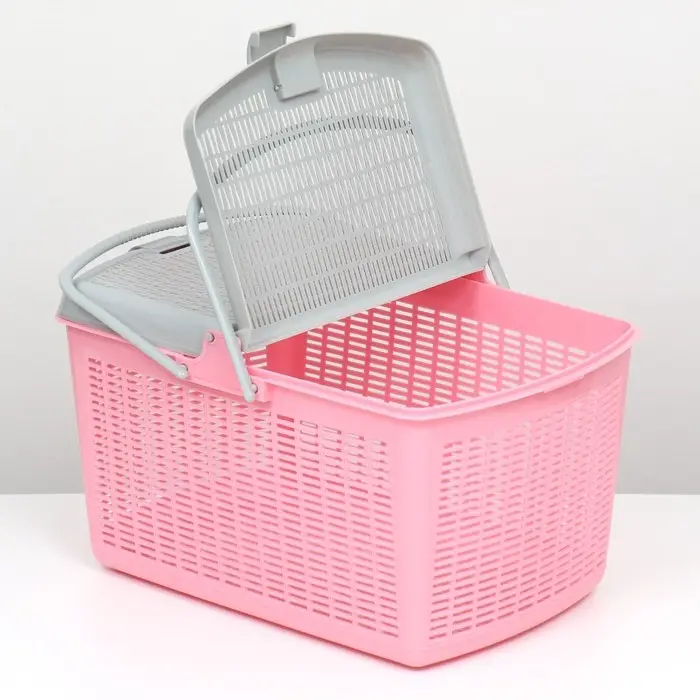 Корзинка имеет удобную ручку для переноски и вентиляционные отверстия, обеспечивающие свежий воздух внутри.