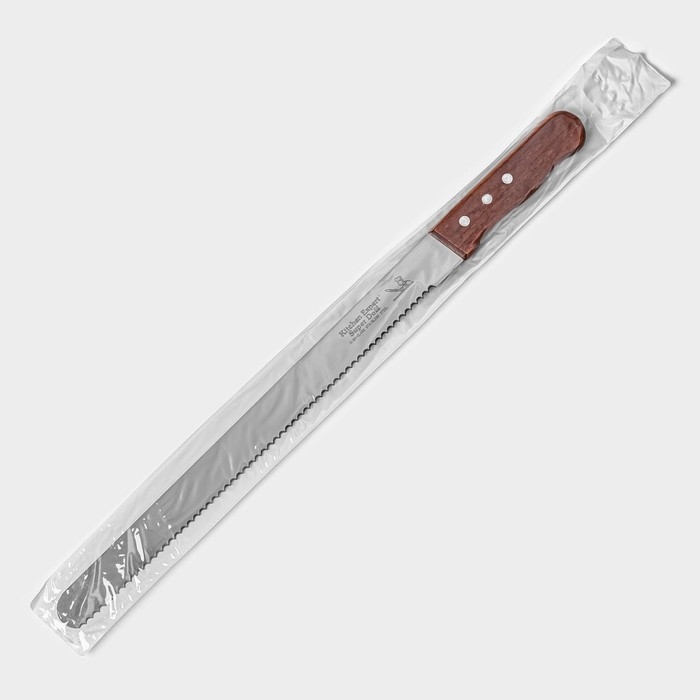 Нож для бисквита, ровный край, ручка дерево, длина лезвия 25 см, цвет коричневый