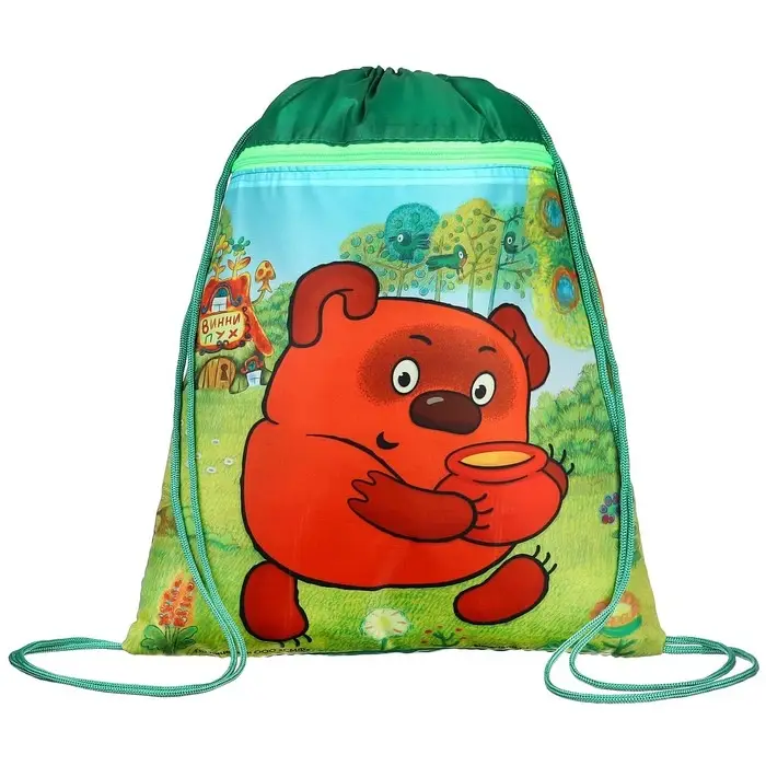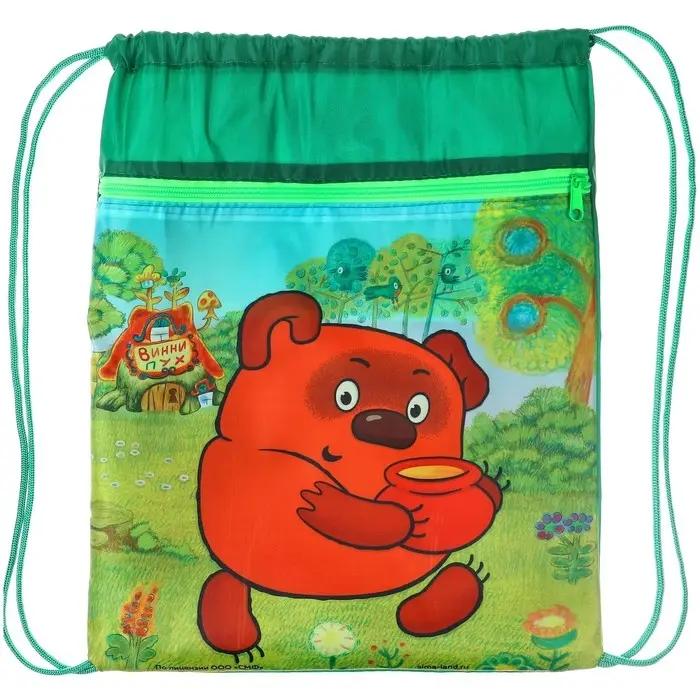 Мешок для обуви с карманом 420×350 мм, мягкий полиэстер, плотность 210D, Союзмультфильм Винни Пух