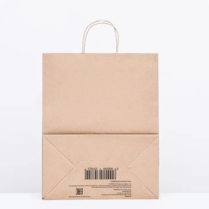 Классический и солидный внешний вид этого пакета придает вашему бренду высокий статус и делает его запоминающимся для ваших клиентов. Надежные ручки из крученой бумаги обеспечивают комфортную переноску и удобство использования.