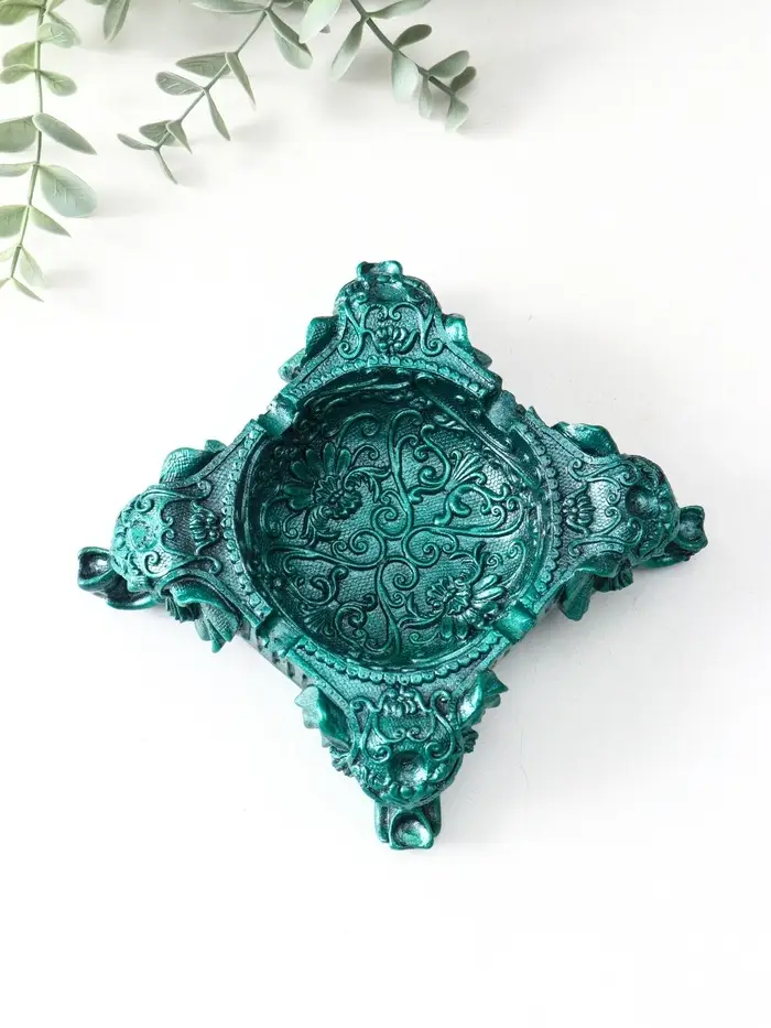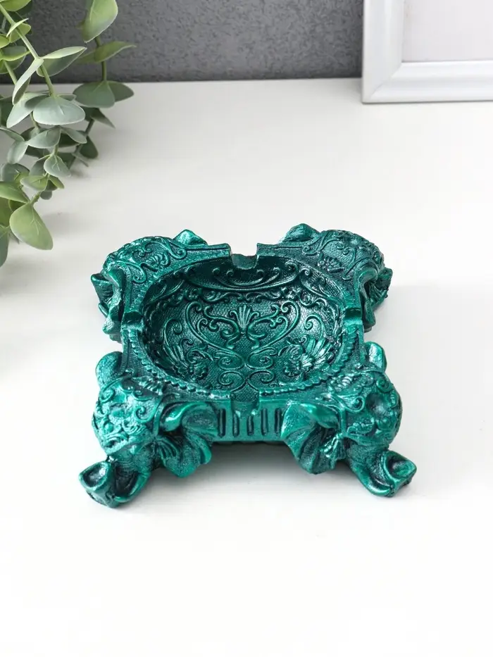 Подставка для мелочей «На четырех слонах резная» 4.5×13×13 см, темно-зеленый металлик