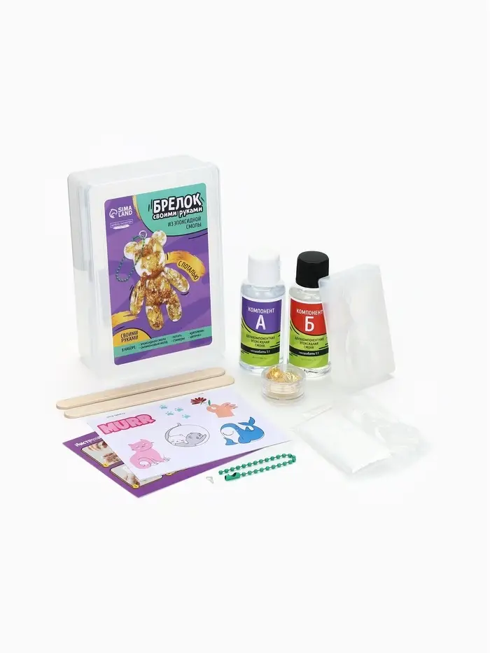 Набор для создания брелока из эпоксидной смолы "Мишка" с поталью