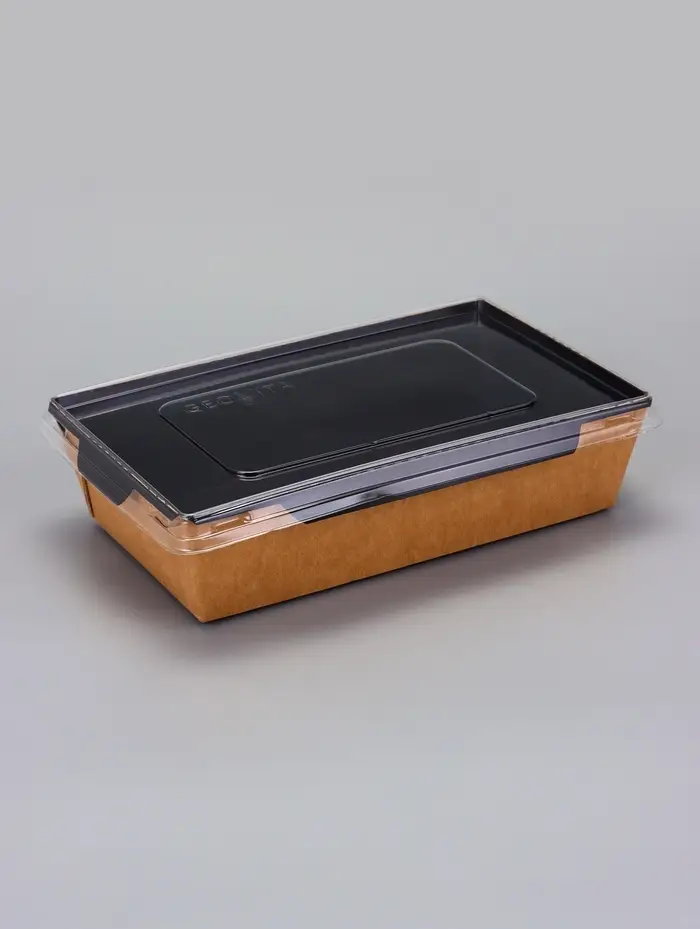 Контейнер с плоской крышкой, черный, 0,8 л, 19 х 13 х 5,5 см