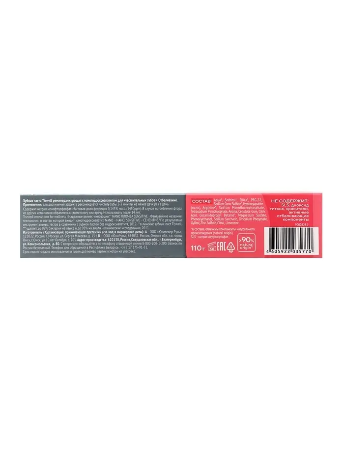 Зубная паста Реминерализующая с наногидроксиапат для чувствствительных зубов отбеливающая 110 гр. 10