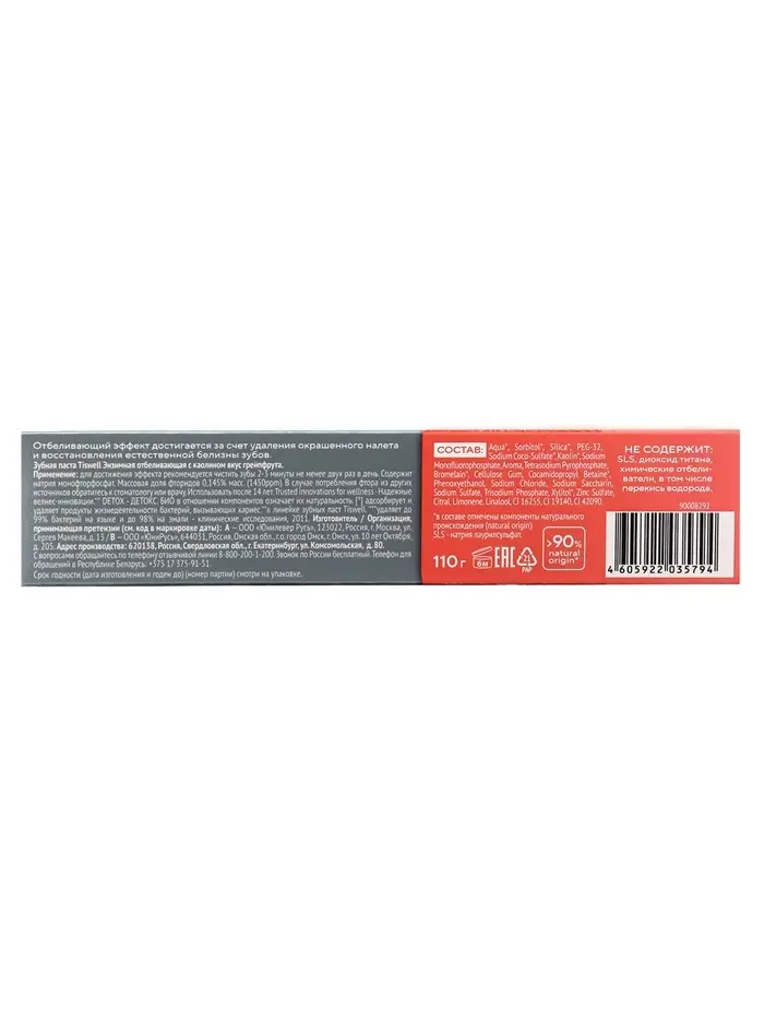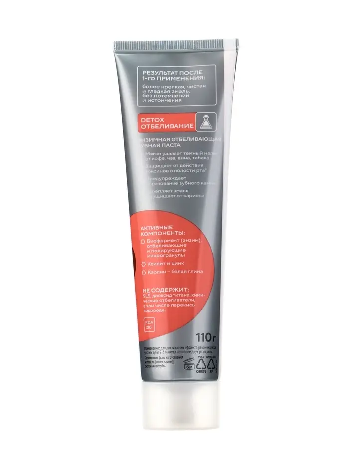 Зубная паста Энзимная, отбелив с каолином, со вкусом грейпфрут 110 гр.