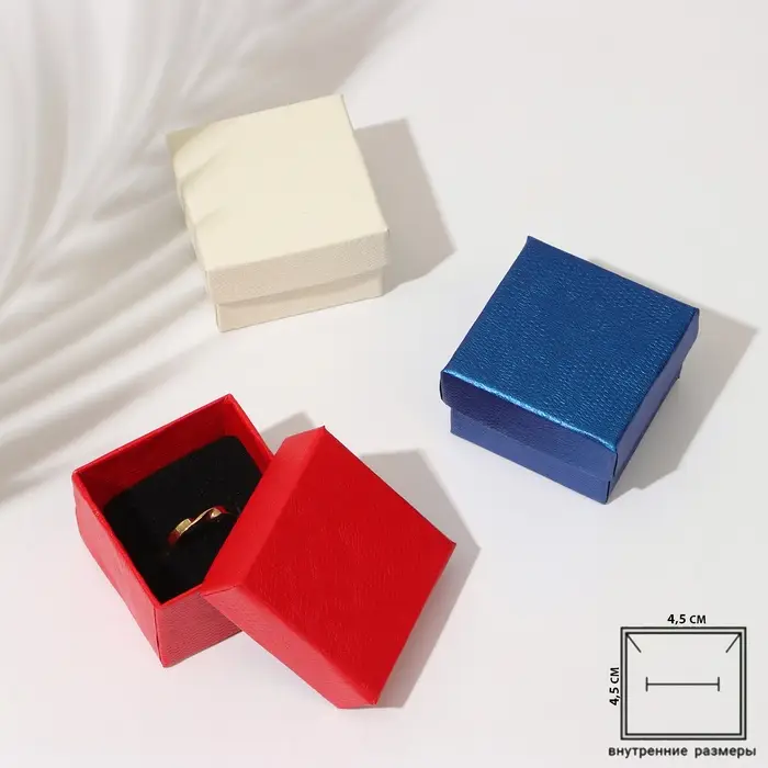 С нашими прекрасными коробочками любой подарок станет еще лучше и ярче. Футляр выполнен из прочного плотного картона. Оптимальный размер коробки 5*5см позволяет разместить кольцо. Внутри каждой коробочки с крышкой есть чёрная бархатная подложка. С помощью специальных прорезей на подушечке можно аккуратно разместить и зафиксировать украшение. А если убрать подложку, упаковка подойдет даже для часов с мягким плоским ремешком или на цепи.