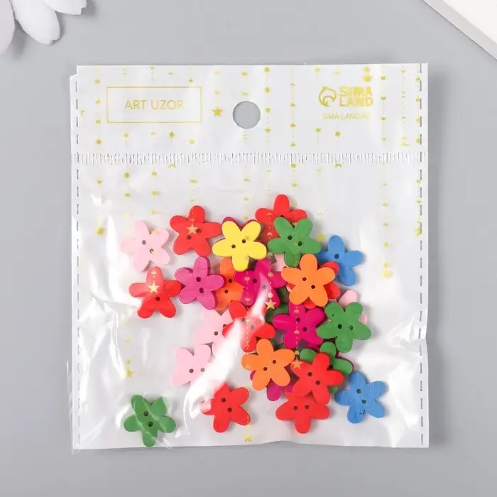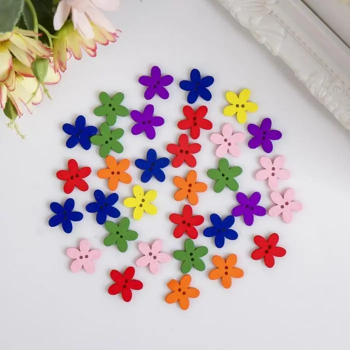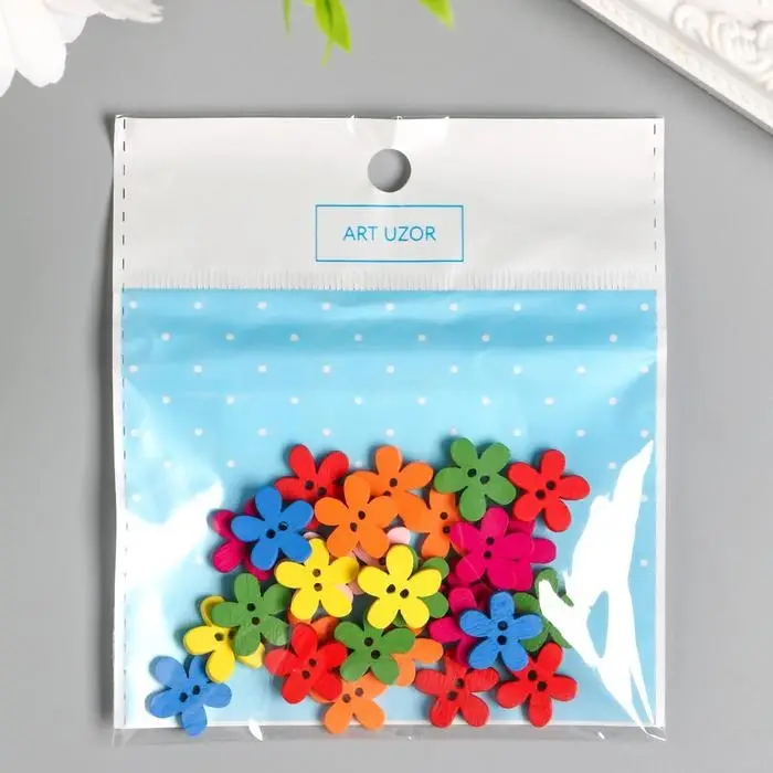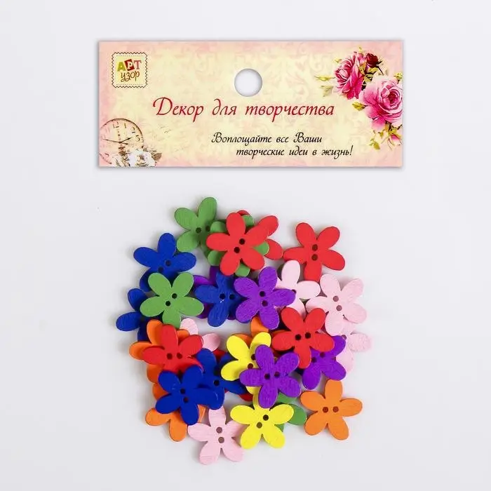 Набор пуговиц декоративных дерево "Яркие цветочки" (набор 30 шт) МИКС 1,5х1,5 см