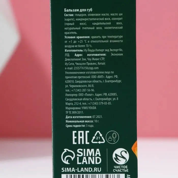 Бальзам для губ ЧИСТОЕ СЧАСТЬЕ в коробке, 10 г, аромат мандарина, Новый Год