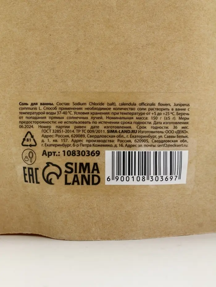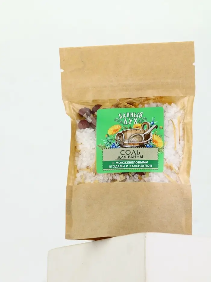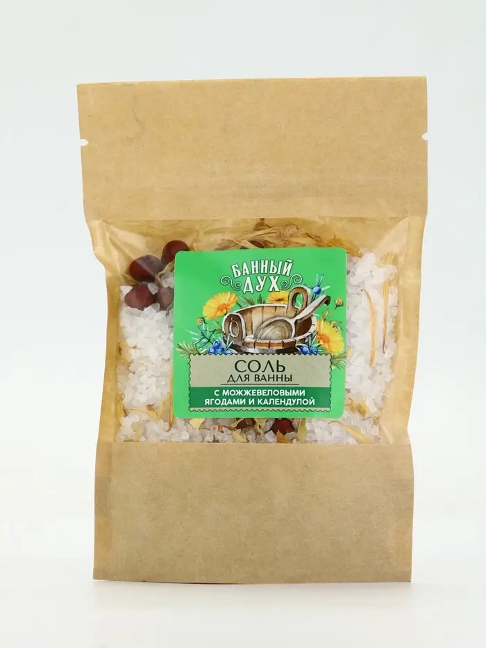 Банный Дух Соль для ванны с можжевеловыми ягодами и календулой, 150 г.