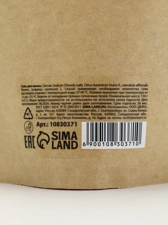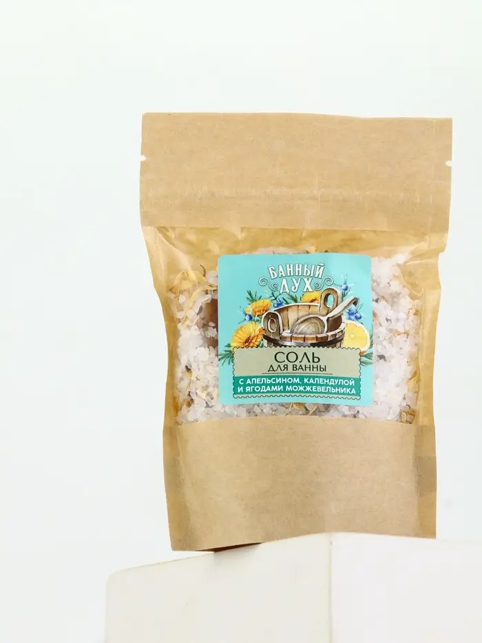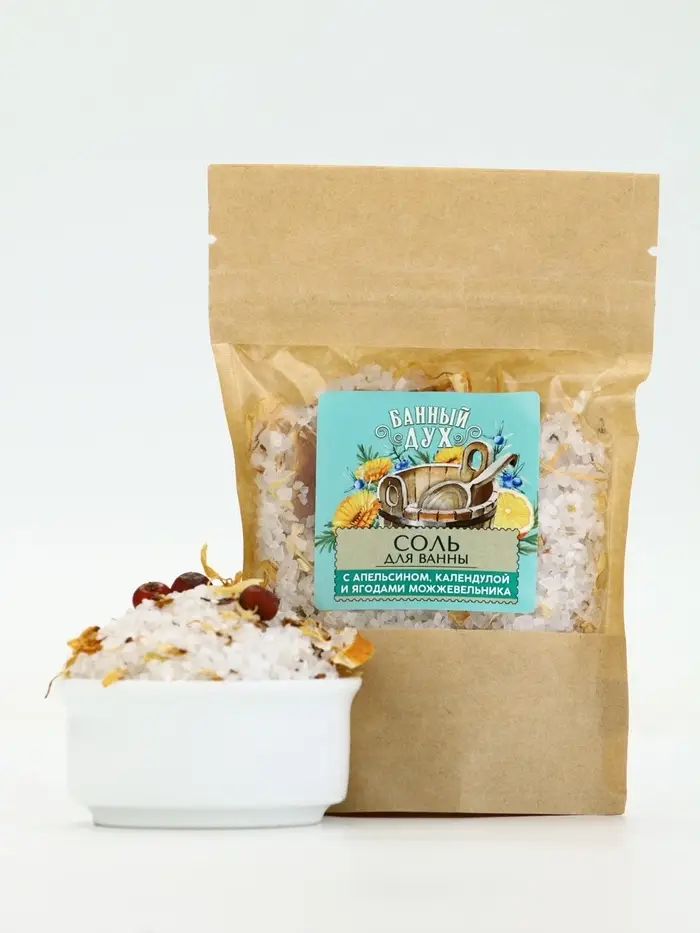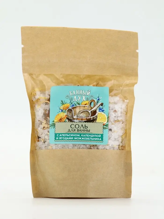 Банный Дух Соль для ванны с апельсином, календулой и ягодами можжевельника, 150 г.