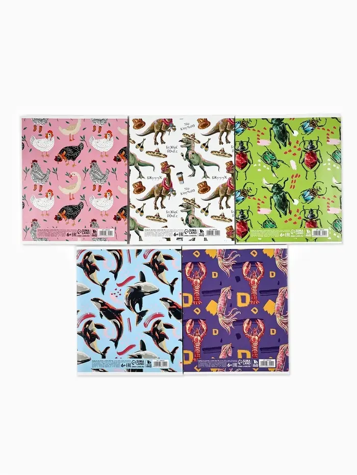 Тетрадь в клетку, 48 л., А5, на скрепке, блок №2 «Паттерн» МИКС