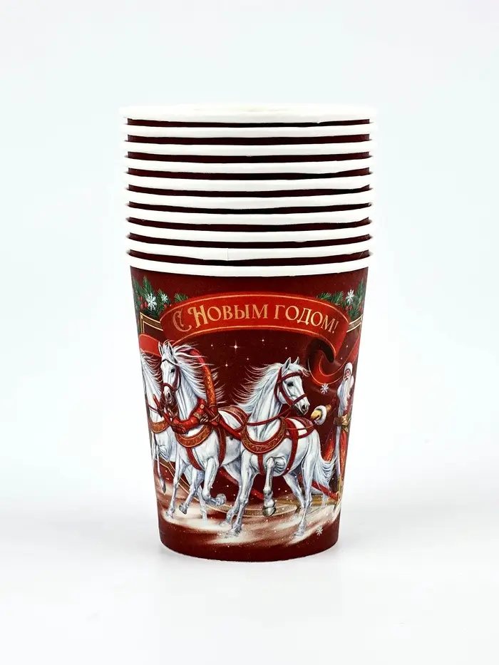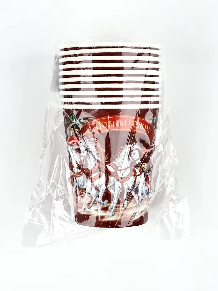 Стакан бумажный "Три лошадки" , красный (250 мл)
