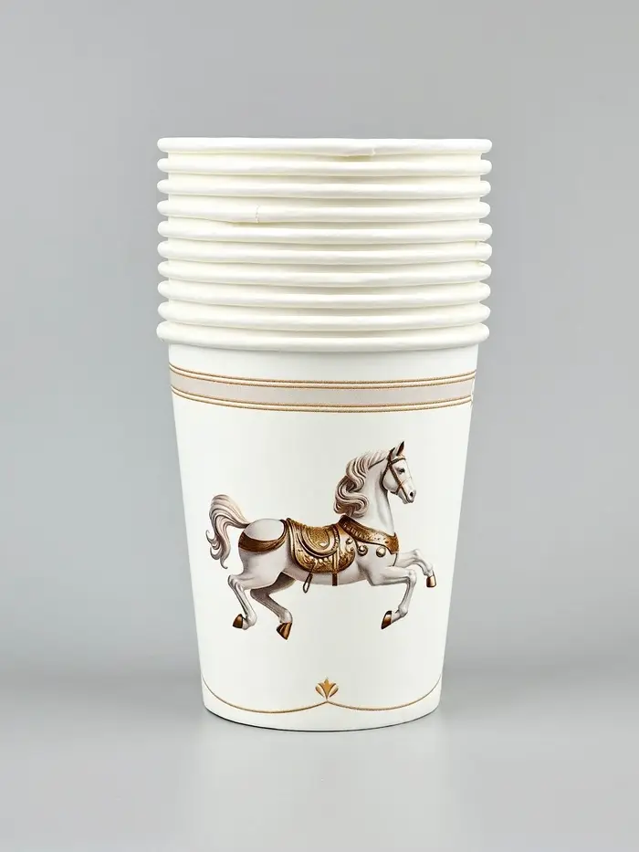 Стакан бумажный "Лошадь, карусель" , белый 18 см (250 мл)