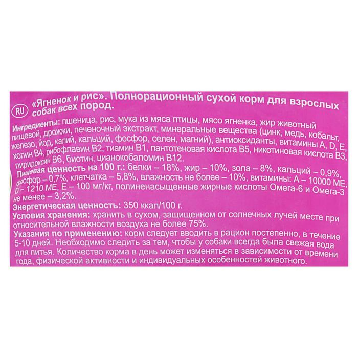 Сухой корм для собак "Puffins" "Ягненок и рис" 15 кг