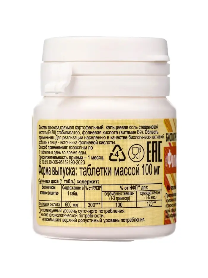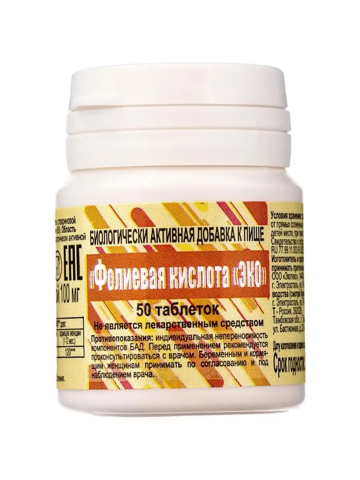 Фолиевая кислота "ЭКО" №50, таб массой 100 мг, банка