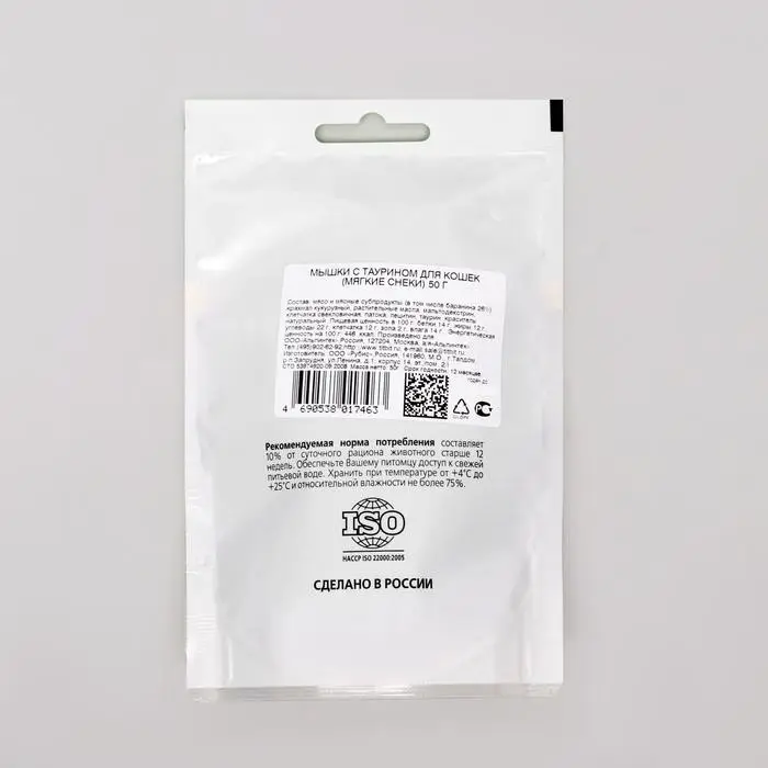 Мягкие снеки TitBit для кошек, мышки с таурином, баранина, 50 г