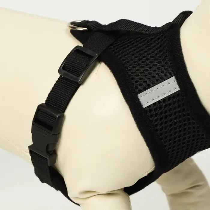 Комплект амуниции с мягкой шлейкой и светоотражающей нашивкой, L, ОШ 33, ОГ 36-48, чёрный