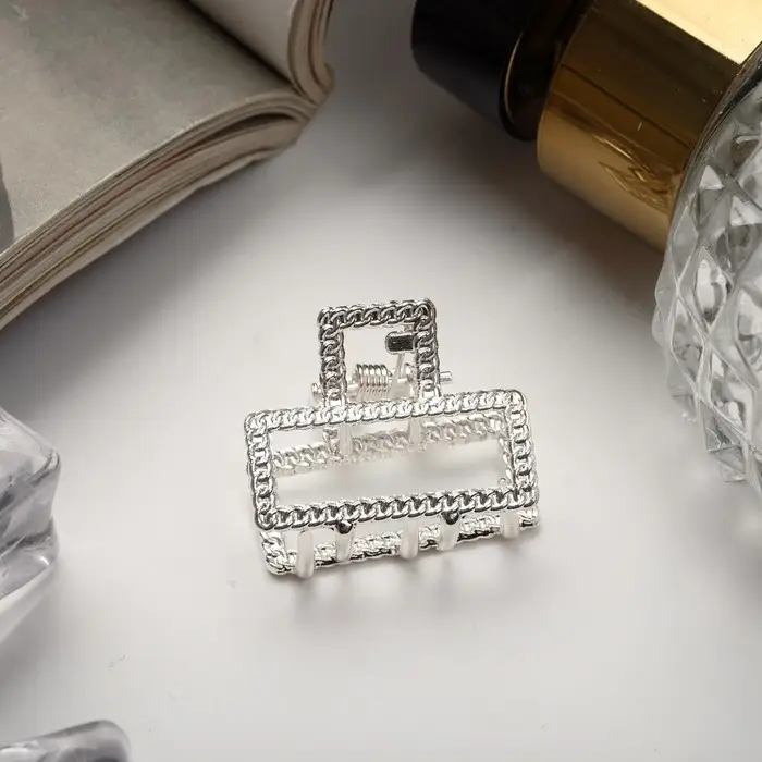 Краб для волос "Эмма" прямоугольник, 2,5х2 см, серебро