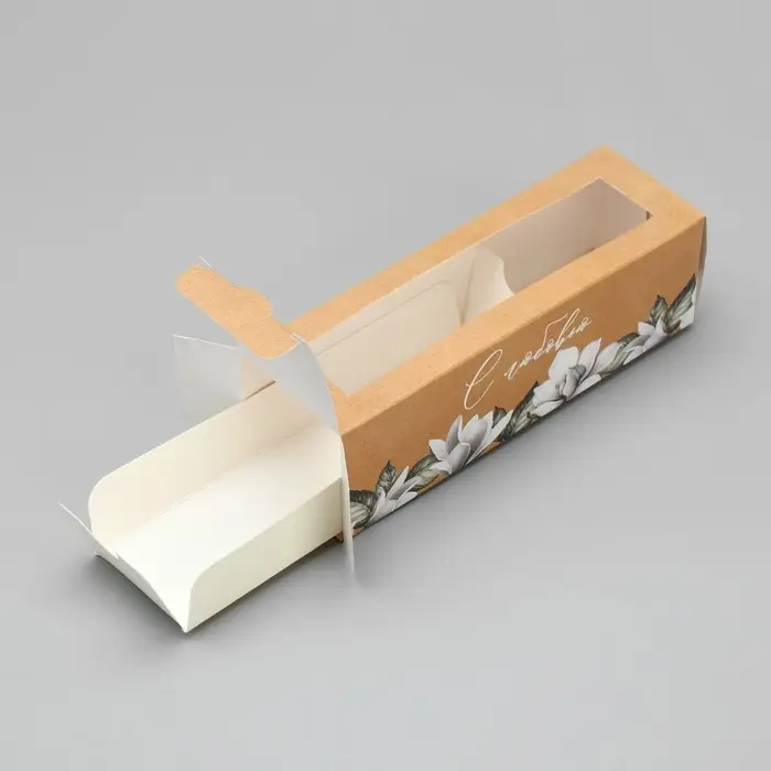 Коробка для макарун, кондитерская упаковка «С любовью крафт» 18 х 5.5 х 5.5 см