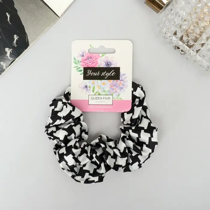 Резинка для волос "Орбита" стиль принт, 10 см, чёрно-белый
