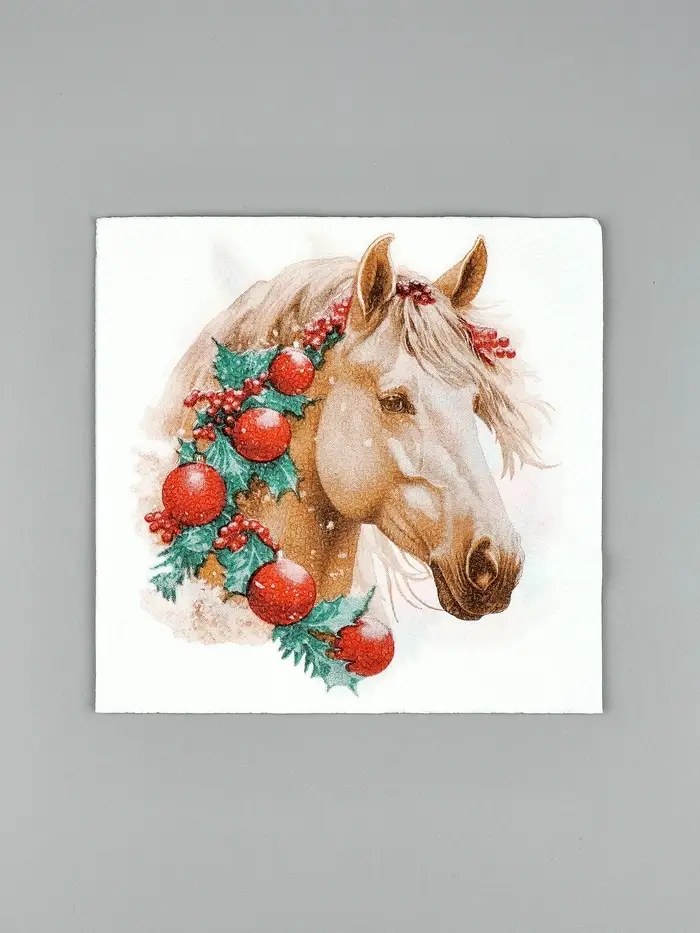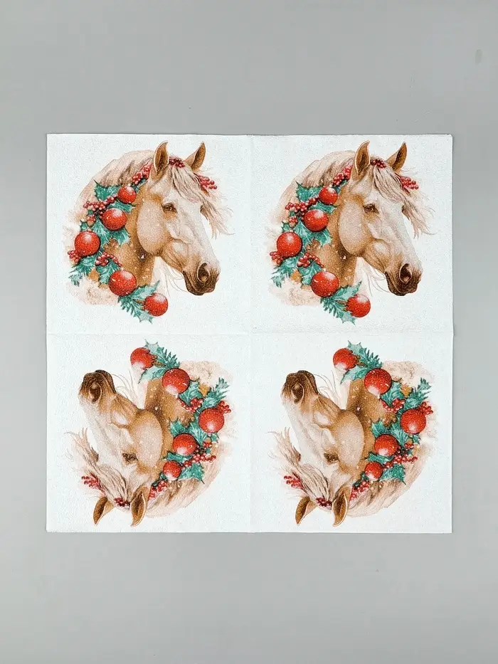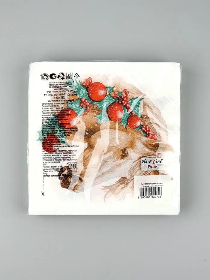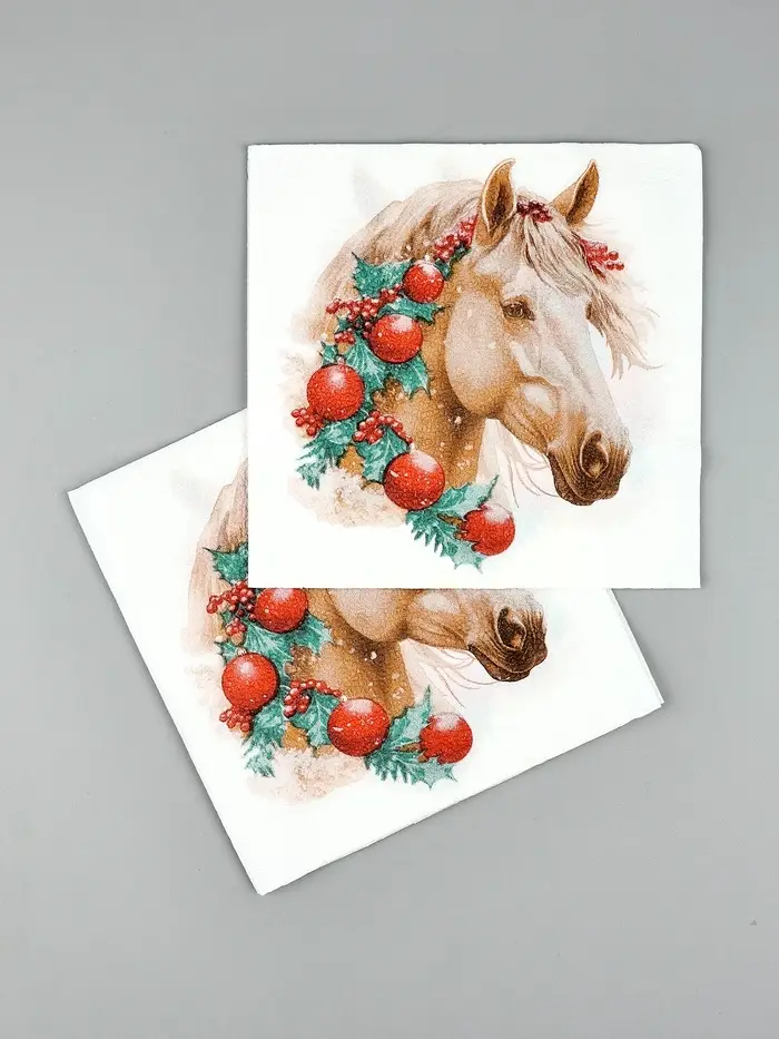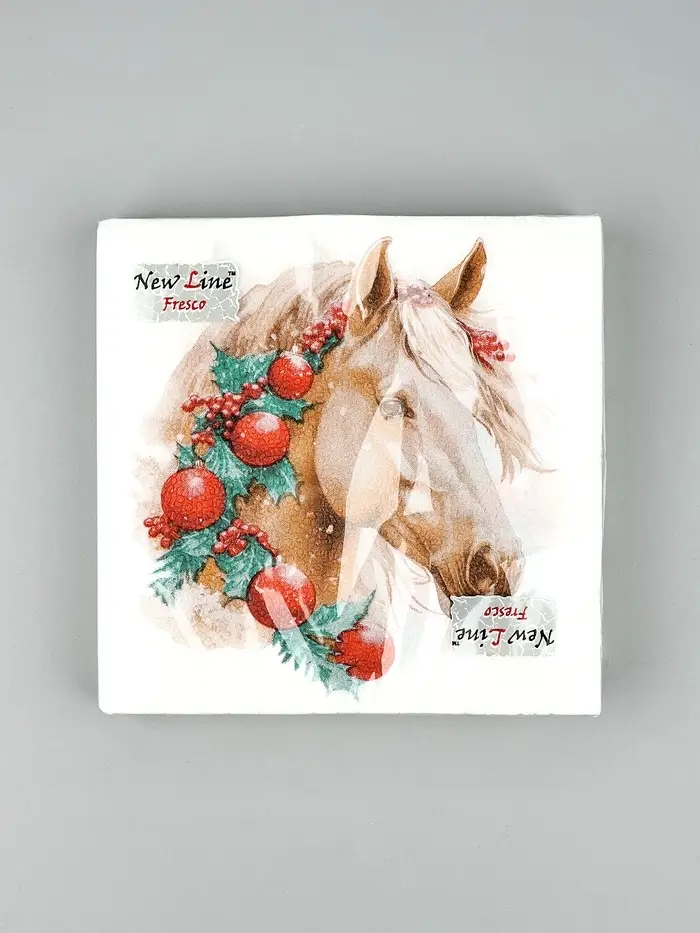 Салфетки бумажные New Line Fresco «Белая лошадь с новогодними украшениями», 33х33 см, 2 слоя 20 лист