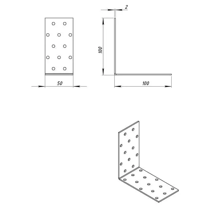 Уголок крепёжный 100 х 100 х 50 х 2 мм, оцинкованный