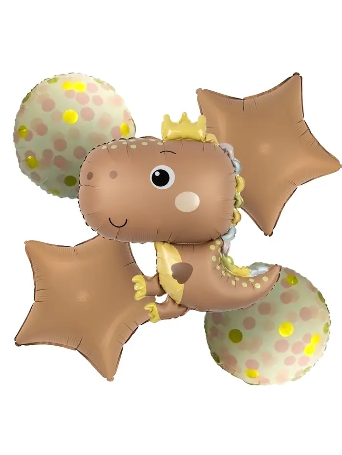 Воздушные шары "Динозаврик" фольга, цвет шоколадный, набор 5 шт.