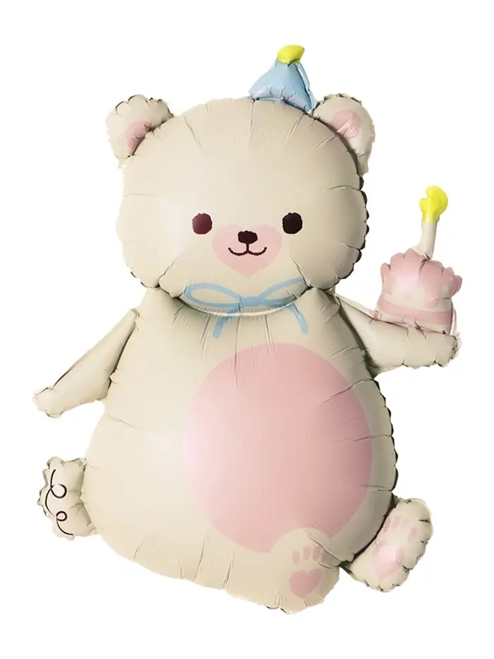 Воздушный шар 39" "Мишка с тортом" кремовый, фольга, инд. уп.