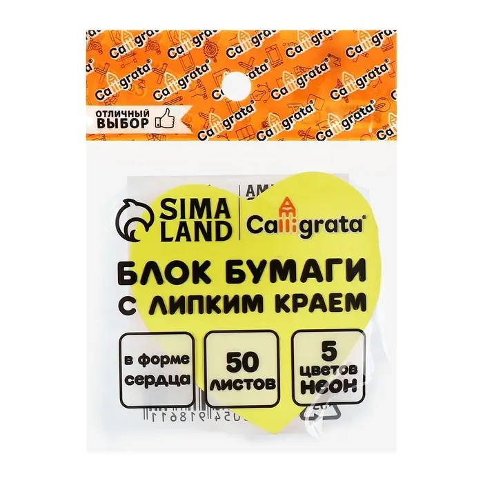 Блок с липким краем, «Сердце» 50 листов, флуоресцентные 5 цветов
