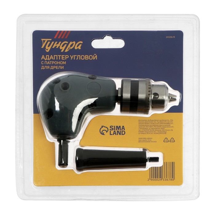 Адаптер ТУНДРА позволяет сверлить и работать с крепежом в ограниченном пространстве и труднодоступных местах. Приспособление устанавливается на электродрель или шуруповёрт. Для удобства работы предусмотрена боковая рукоятка.