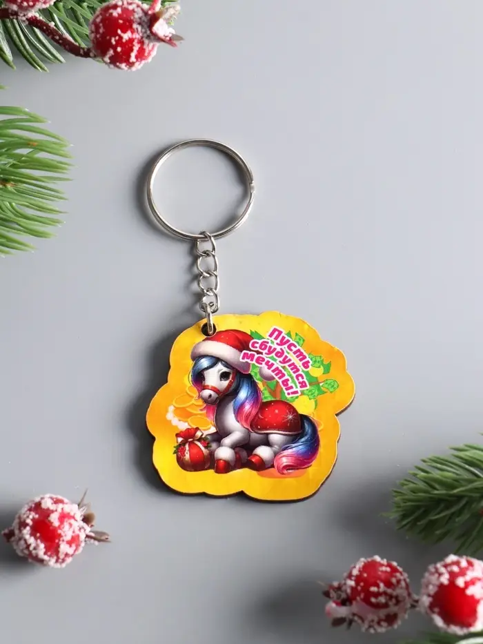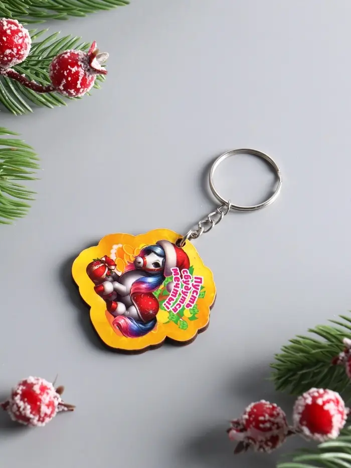 Брелок новогодний 2026 «Пусть сбудутся мечты», размер брелока 4.5×4 см