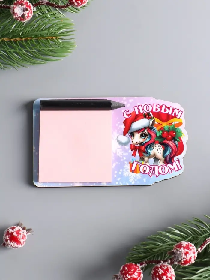 Магнит новогодний с блоком для заметок «С Новым Годом», размер магнита 6.5×11 см