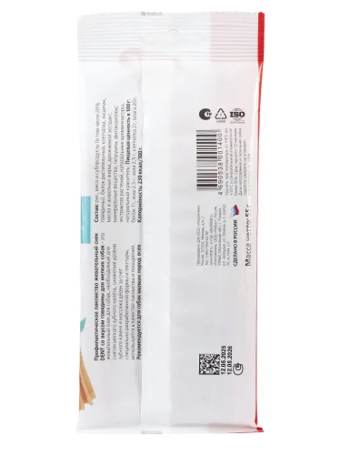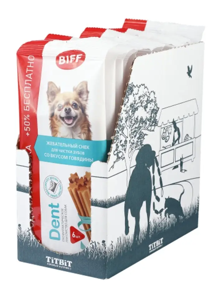 Жев снек DENT со вкусом говядины для мелких собак 6 шт (Выгодная упаковка) 55 гр