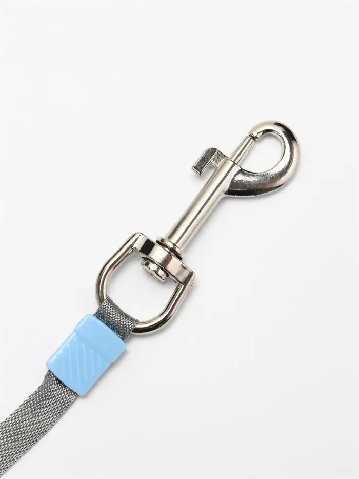 - Яркий голубой цвет: Лента хорошо заметна в траве и в темное время суток. Владелец всегда видит, где находится поводок.