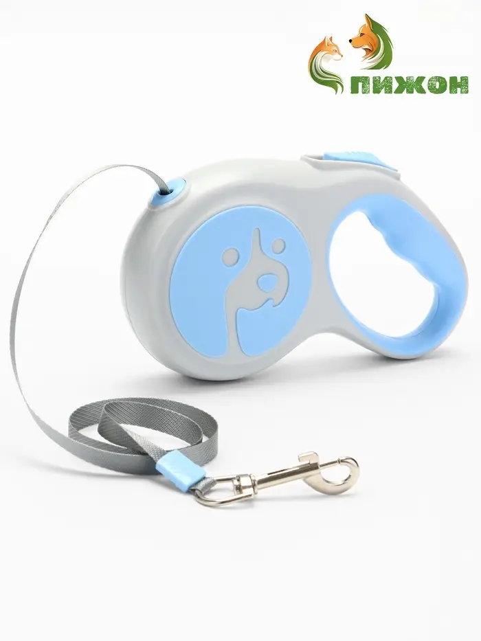 Комфортные прогулки в ваших руках! Голубая рулетка-поводок для собак (5 м) — удобный аксессуар для ежедневного выгула. Автоматическое сматывание ленты избавляет от запутывания, а прочный механизм обеспечивает надежный контроль над питомцем.