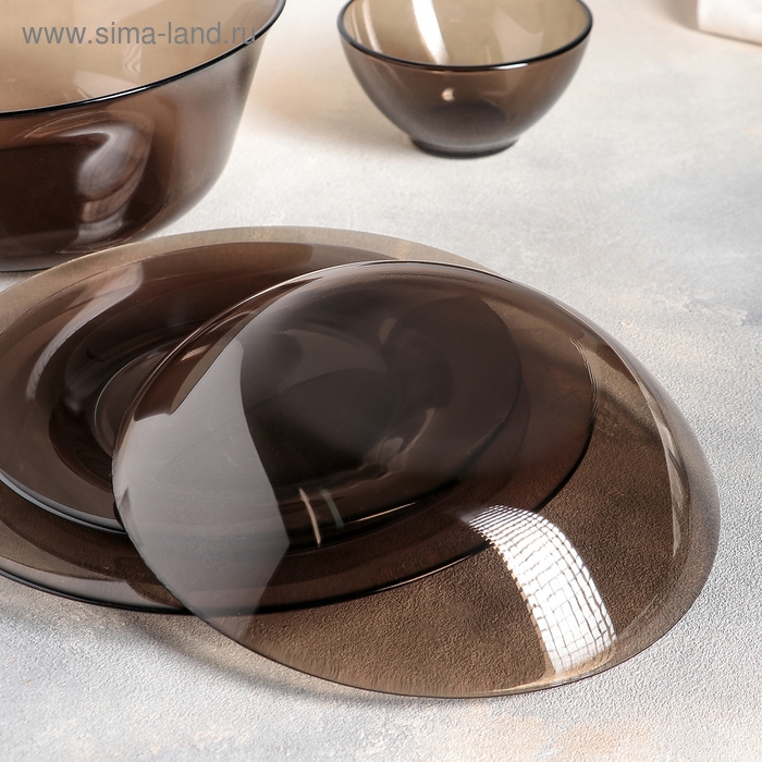 Набор тарелок стеклянных Доляна «Колибри», 19 предметов: 6 десертных тарелок, 6 обеденных тарелок, 6 мисок, салатник